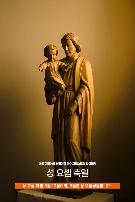 가톨릭 전례력에서 3월은 ‘성 요셉 성월’로 불리며, 한 달동안 신자들은 성 요셉의 덕행을 묵상하고 그의 삶을 본받아 신앙을 실천하도록 초대받습니다. 교회에서는 동정 성모 마리아의 정배인 성 요셉을 특별히 공경하며, 그의 덕행과 헌신을 다시 떠올리는 시기입니다. 특히 이 요셉성월이라는 시기가 '사순시기'와 맞닿아 있다는 점에서 더욱 깊은 의미를 가집니다.