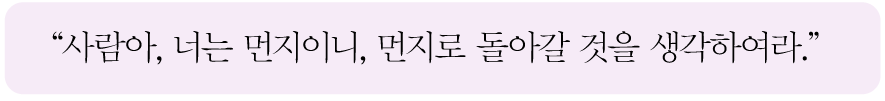 "사람아, 너는 먼지이니, 먼지로 돌아갈 것을 생각하여라."