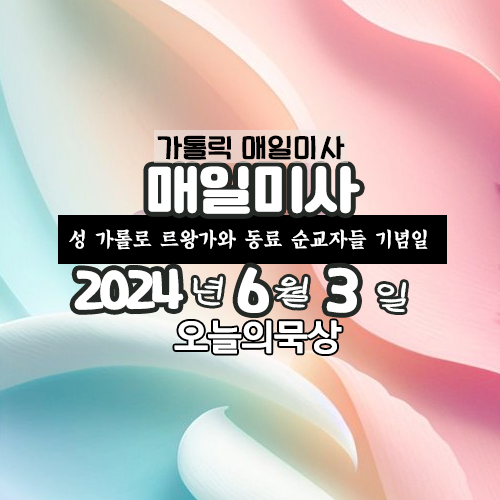 2024년 6월 3일 매일미사 성 가롤로 르왕가와 동료 순교자들 기념일 오늘의 묵상