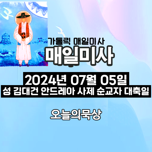 2024년 7월 5일 매일미사 한국 성직자들의 수호자 성 김대건 안드레아 사제 순교자 오늘의 묵상